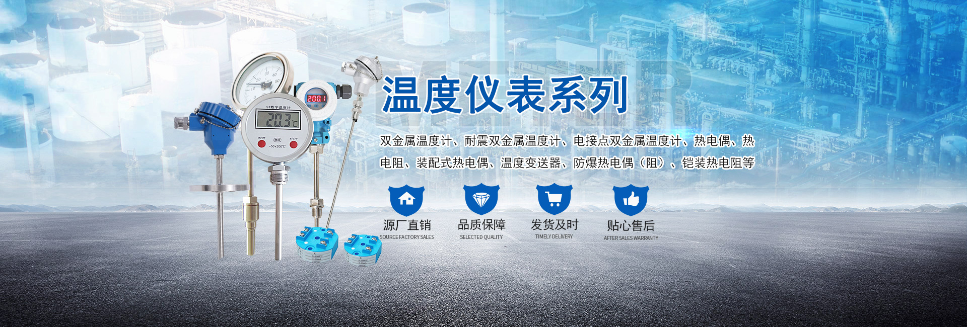 主營(yíng)產(chǎn)品:壓力表、熱電阻、熱電偶、壓力變送器、溫度變送器、雙金屬溫度計(jì)、磁翻板液位計(jì)等